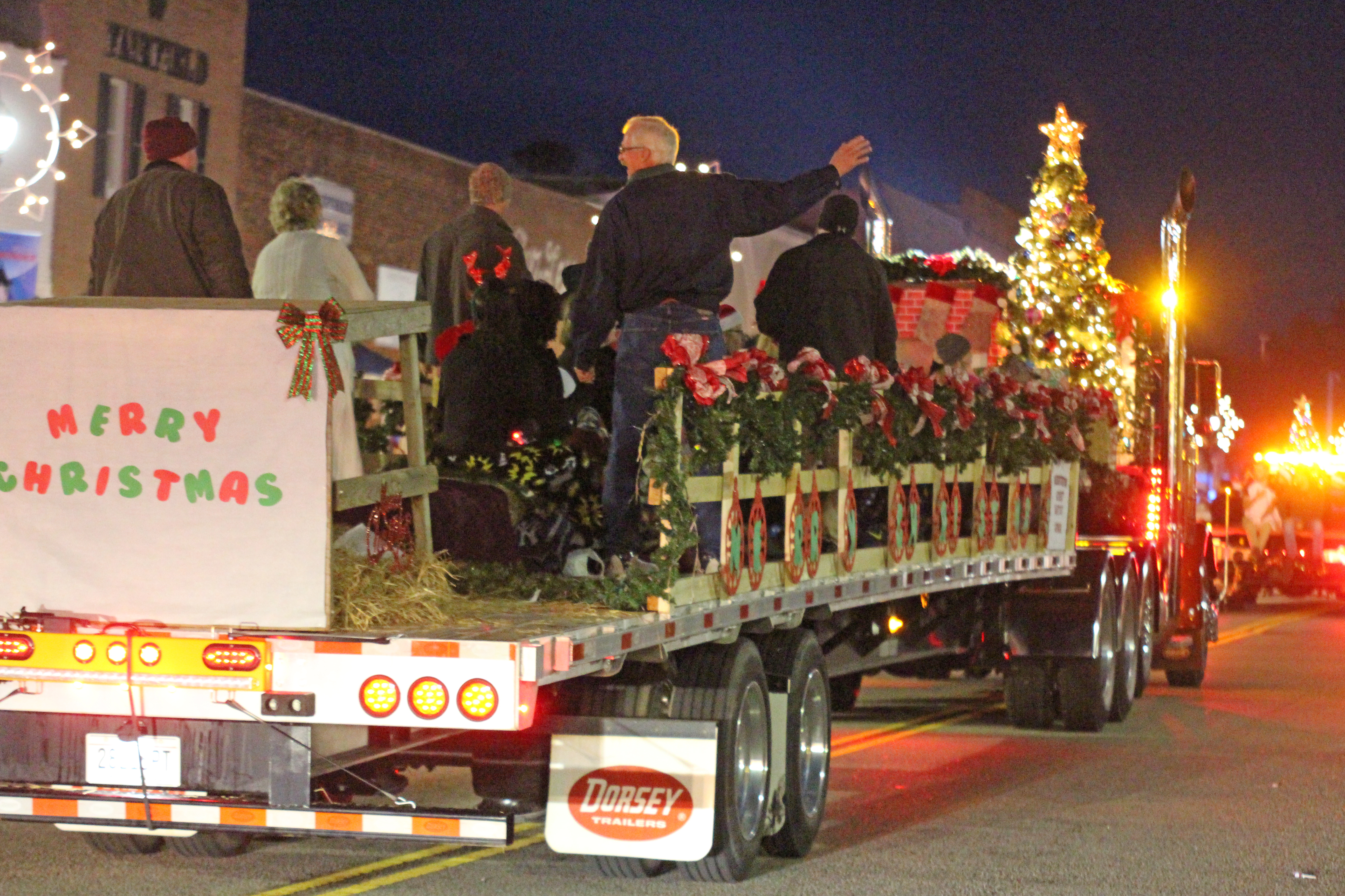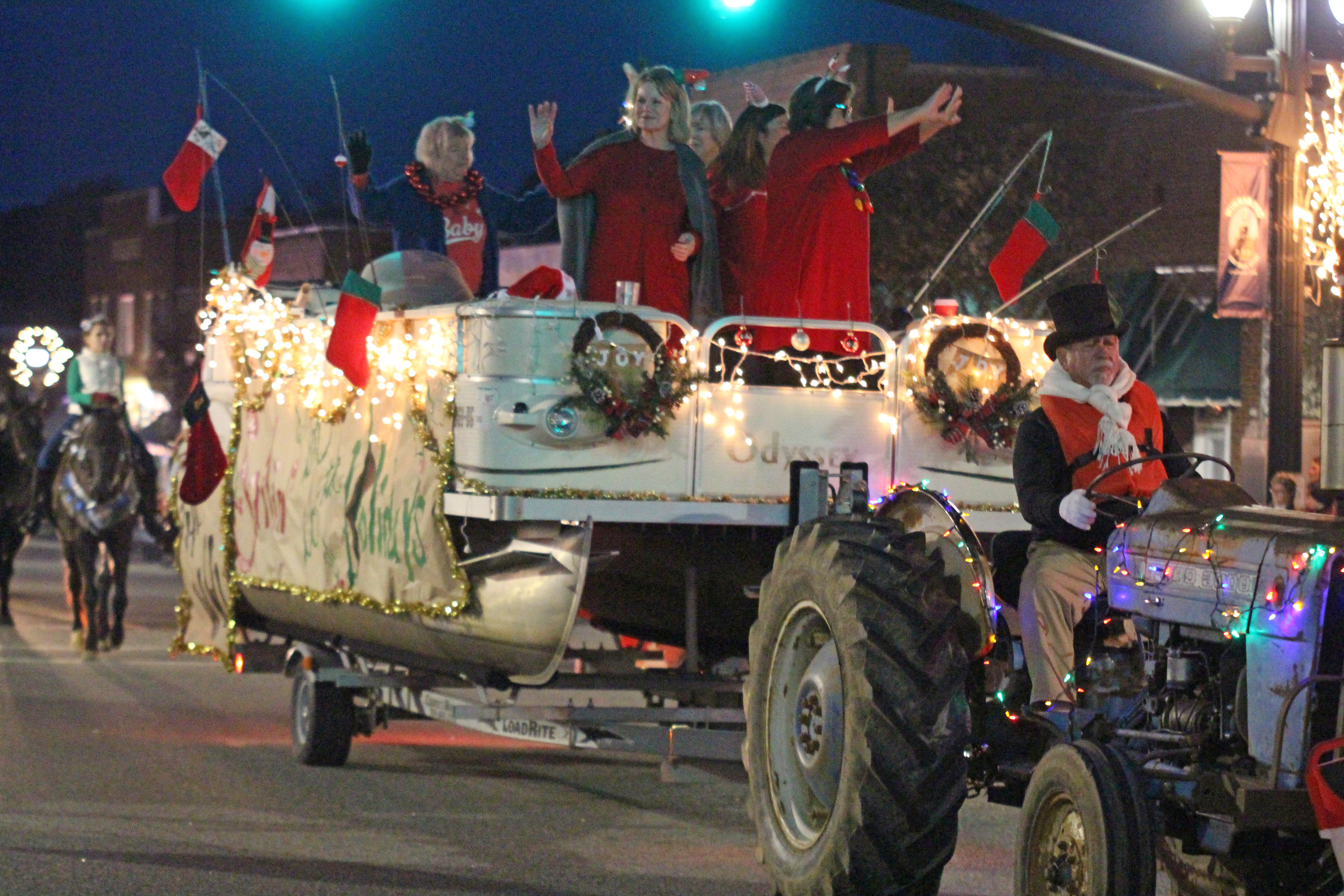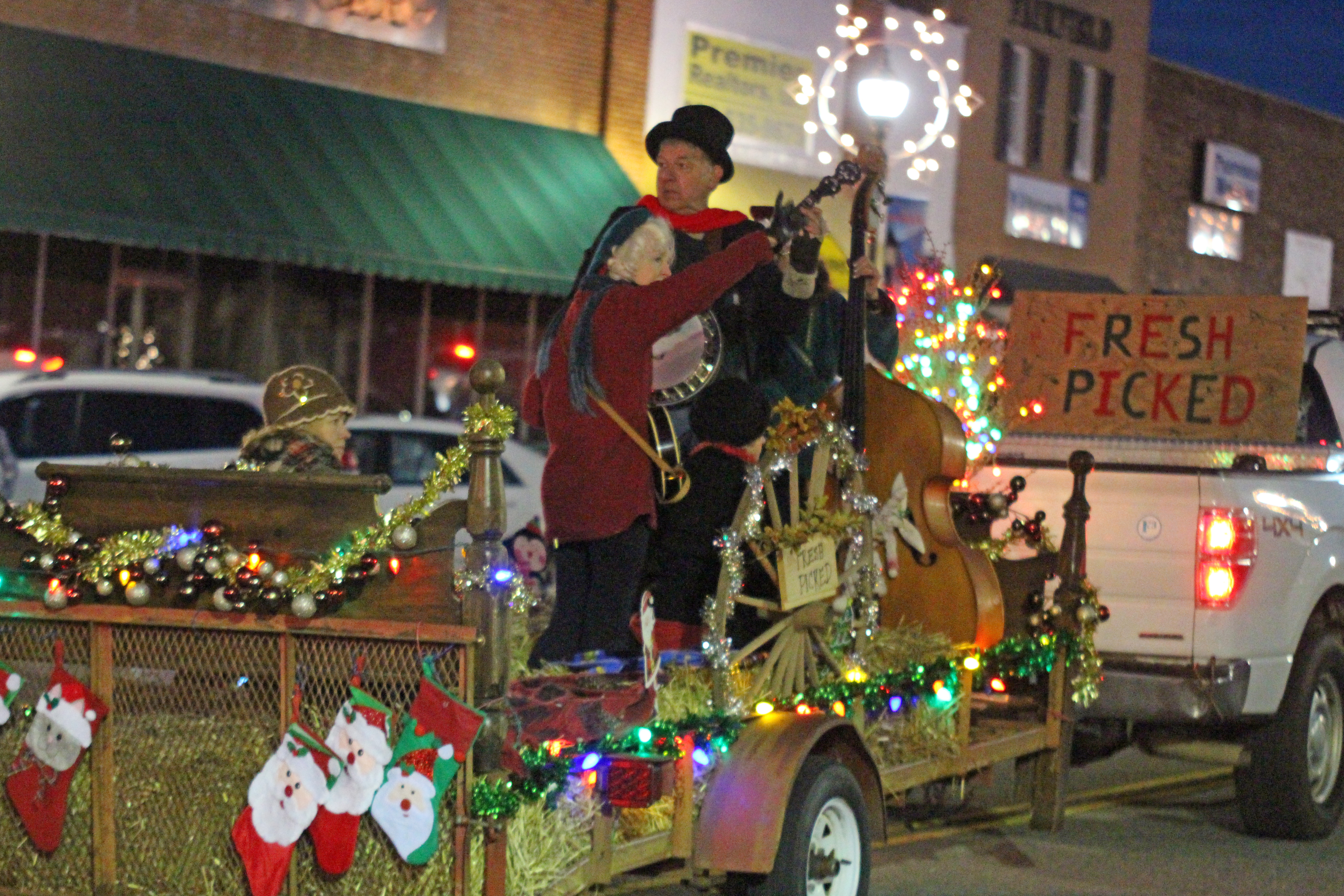Santa and his elf wave to the crowd gathered for Winnsboro’s evening Christmas Parade on Sunday. | Photos: Martha Ladd