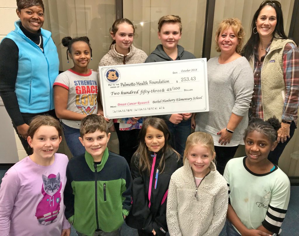 BLYTHEWOOD – Students at Bethel-Hanberry Elementary raised over $250 for Breast Cancer Awareness. Pictured are student council members, back from left: Principal Tracy Footman, Lauren Flynn, Erin Daniels, Kenneth Martin, Assistant Principal Shannon Holland, Student Council Sponsor Brandy Hagood; front: Bailey Jones, Zachary Hardy, Maybry Akabane, Anna Claire Lannin and Taukerra Roberts.