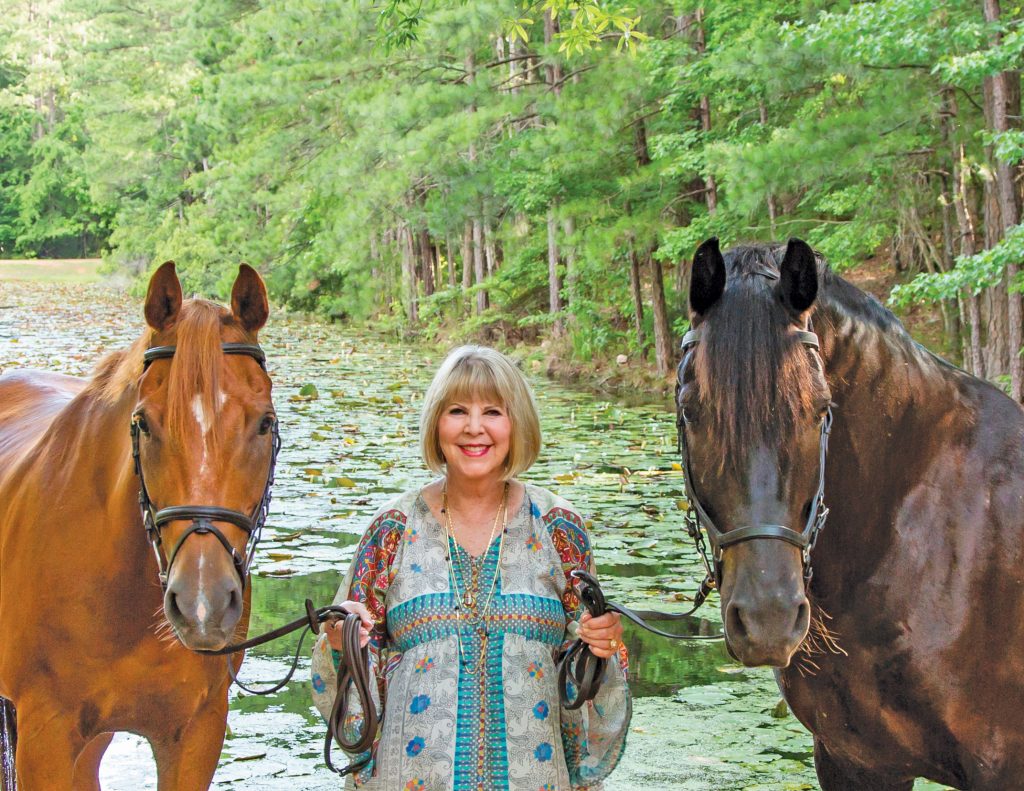 Joyce Martin Hill, who owns Farewell Farm in Blythewood, and her two horses, Kodak Moment and Noah, are featured inside the front cover of The Hoof and Paw Benevolent Society’s new fundraiser coffee table book, Friends of Hoof & Paw, 2018. The book was released during a presentation party at The Farm last week. | Harold Dodson