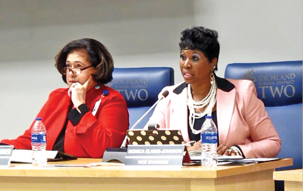 Richland Two board member Monica Elkins-Johnson, right, was denied a restraining order against Board chair’s husband. | Barbara Ball