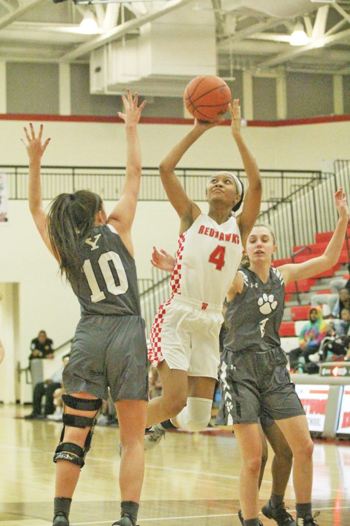 With Nyah Leveretter’s backcourt play and Unique Drake’s ball handling, the Redhawks dominated the turnover-prone Stallions and secured the driver’s seat in a region title with a 73-55 victory.