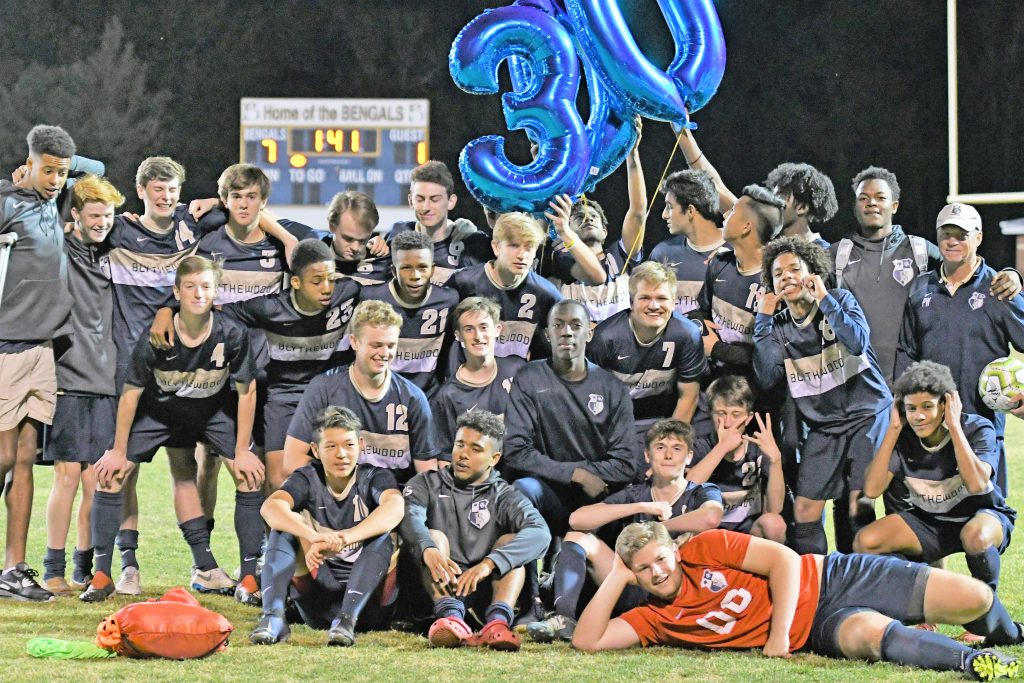 BLYTHEWOOD – Last Thursday’s conference game against Sumter marked a big milestone for Bengal Head Coach Peter Wittig, back right. The Bengals’ 7-1 win put number 300 in the win column for Wittig.