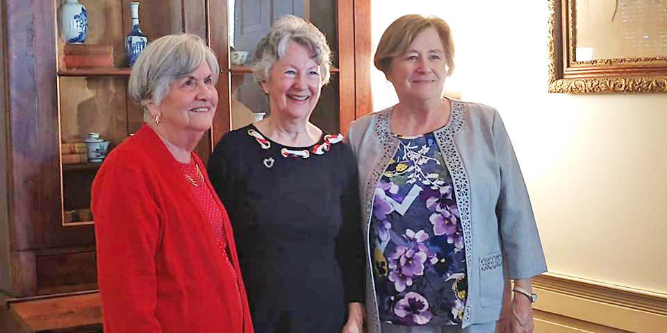 Pictured above, Mary Ann Hollis and Mary Vinnacombs, the great, great, great granddaughters of Catherine Ladd (educator, author and patroness of the arts) join Pat Veasey, author of a book about Ladd’s life.