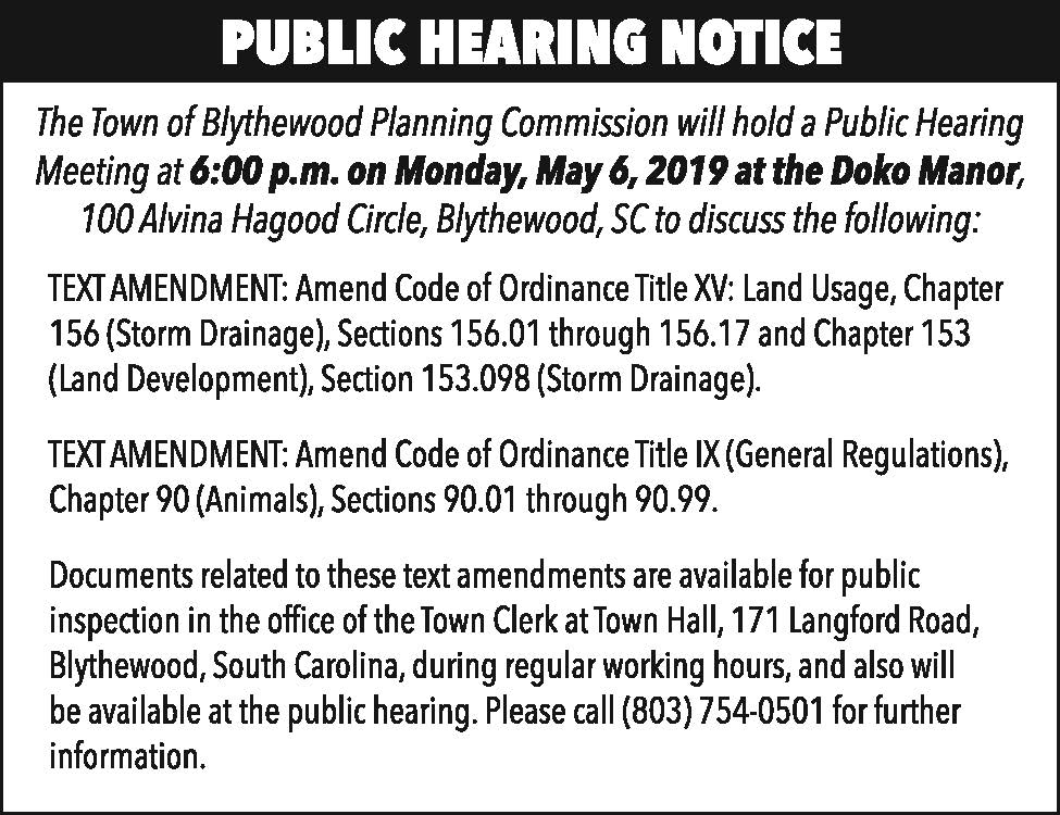 Public Hearing Notice: Blythewood Planning Commission