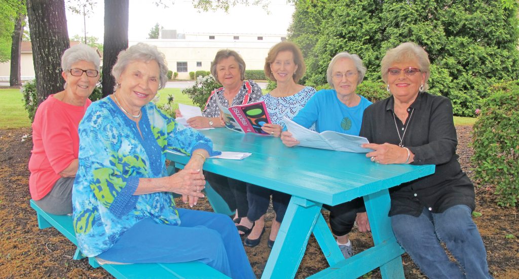BLYTHEWOOD – The Ruby Brown Circle of the United Methodist Women gather round one of three turquoise tables that Trinity UMC in Blythewood has positioned around the church’s campus. Kristin Schell, founder of the Turquoise Table movement is a wife, mom and author from Austin, Texas, who realized how easily we can get wrapped up in the “dailyness” of life that we don’t take time to reach out to our neighbors. From that realization, the Turquoise Table and Front Yard People movement began. Taking the turquoise table opportunity to rest and visit are, clockwise from left, Jeanette Smith, Hans Vrandenburg, Diane Sizemore, Carolyn Pregnall, Anne Maginn and Eileen Sharpe.
