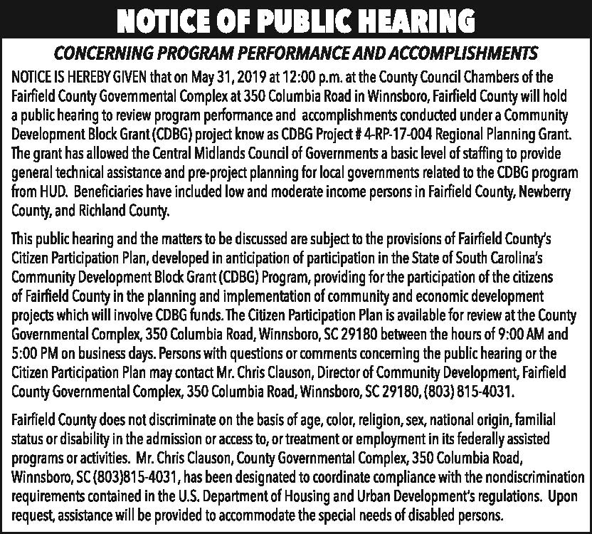 Notice of Public Hearing – CDBG Project # 4-RP-17-004