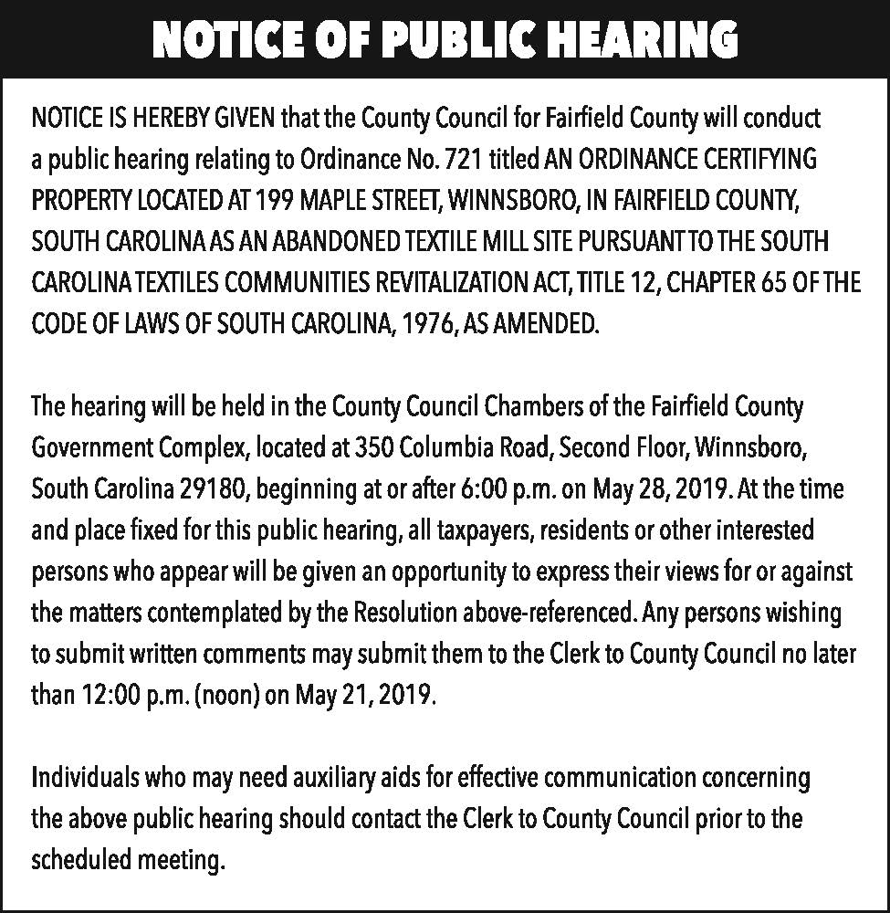 Notice of Public Hearing: Ordinance No. 721