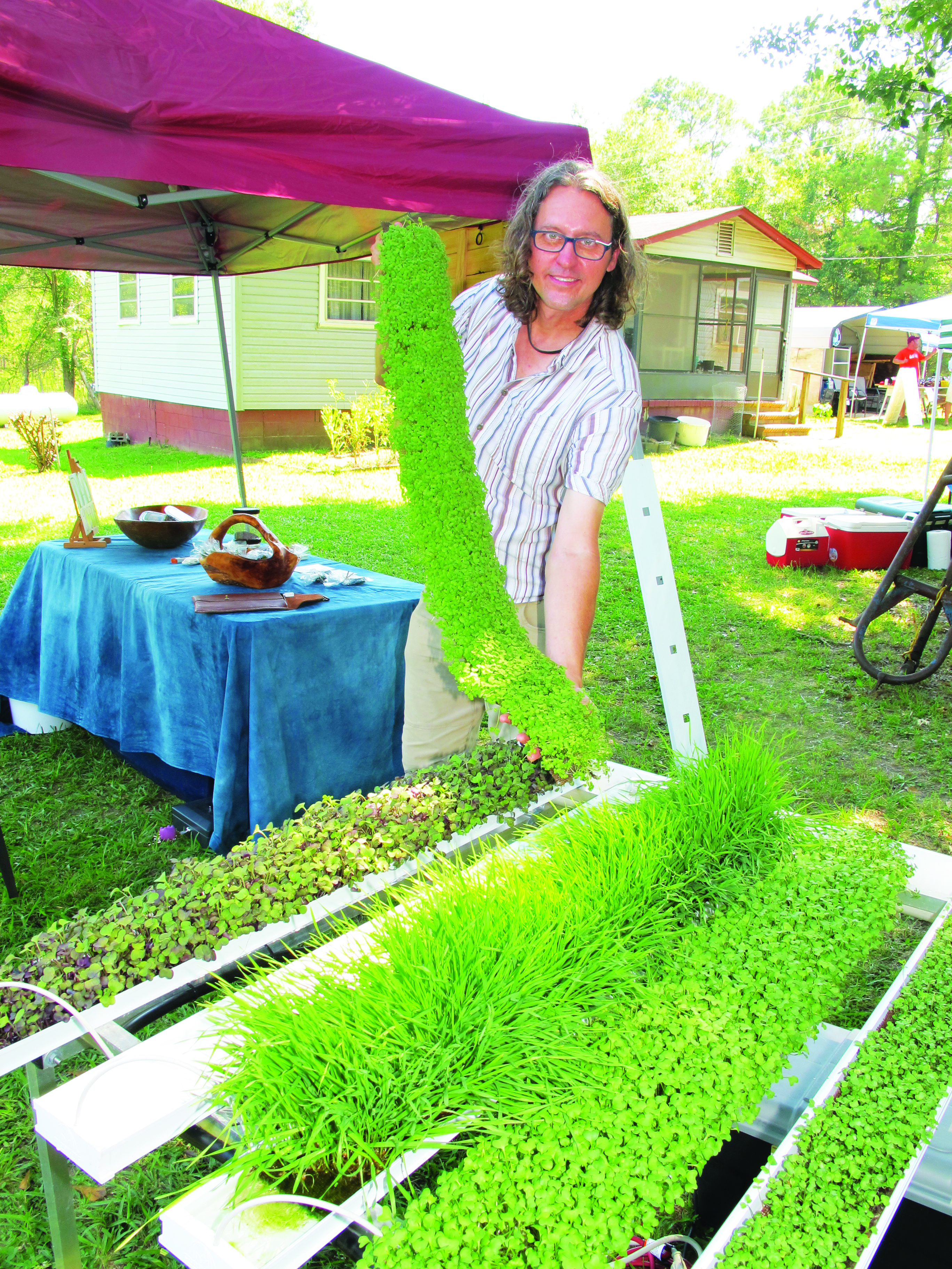 The inaugural Richland County Ag + Art Tour was a hit, thanks in part to several Blythewood farmers who showed off what they do best. Above center, Josh Fabel, owner of Fabel Farms in Cedar Creek, offered organic vegetables, honey produced on the farm and fatwood. At right, Keith Hearn, owner of Daly Greens, displays his hydroponic micro greens and wheat grass.