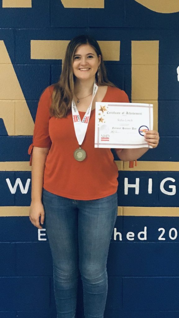 BLYTHEWOOD – Blythewood High School (BHS) senior Sophia Lynch was awarded top prize for her entry in Women’s History at the National History Day Contest in June 2019.
