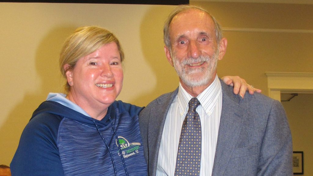 BLYTHEWOOD – Councilman Malcolm Gordge presented a check to Camp Discovery Director Amy Ellisor Monday night for $1,000 on behalf of the town. Gordge serves on the group’s board.