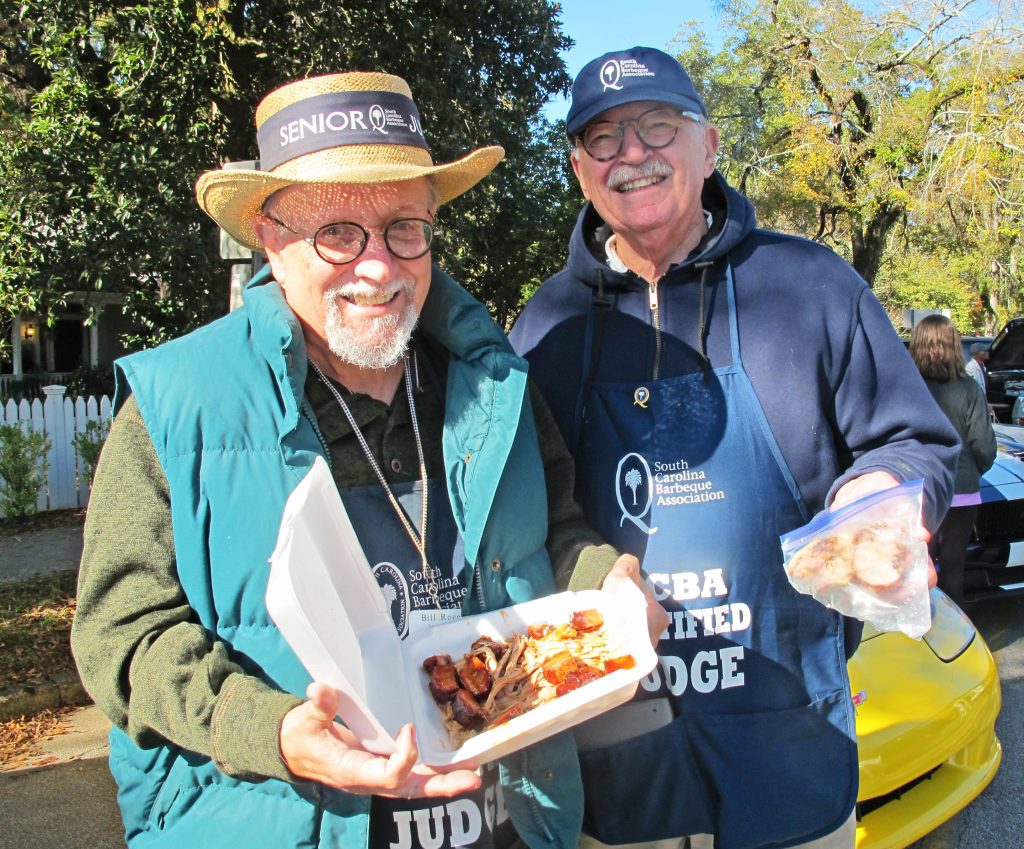 After an hour or so of taste-testing, two longtime Pig On The Ridge BBQ judges, Bill Rogers (Executive Director of the SC Press Association) and Media Attorney Jay Bender show off their lunch selections.