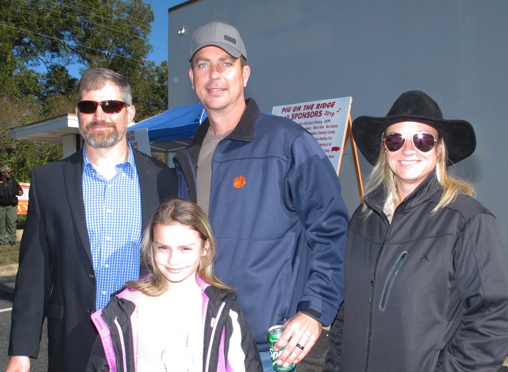 Tom Connor, one of the original Pig On The Ridge organizers, stepped down this year after 20 years of service to the popular BBQ event. Co-organizer Henry Dixon paid tribute to Connor during the event Saturday, recognizing his work to help make POTR a top BBQ event in the state. Shown with Connor, from left, are his grandchildren Louise and Doug Ruff, his wife Artie and daughter DeDe Ruff.