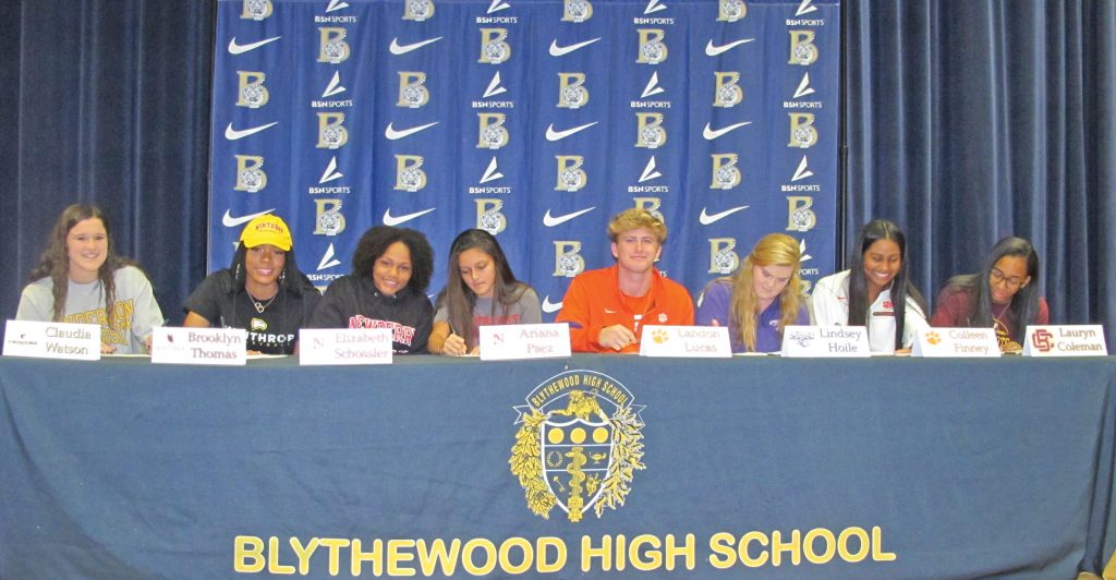 BLYTHEWOOD — Blythewood High School recognized eight members of the Class of 2020 as they announced their plans to continue their careers on the collegiate level during the early signing period.