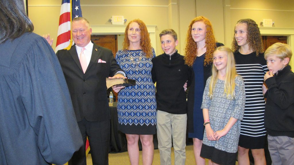 BLYTHEWOOD – After a long goodbye by outgoing Mayor J. Michael Ross, Bryan Franklin was sworn into office as the new Blythewood mayor along with two councilmen – returning Councilman Eddie Baughman and new council member Donald Brock.