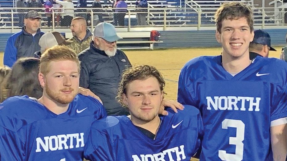 Richard Winn seniors Brandon Miller (1), Cam Bass (45) and Hudson Wade (3) were chosen to participate in the SCISA 8-man North-South All Star game last Friday. Wade had an interception and Miller scored all of the North’s points in their 13-17 loss to the South.