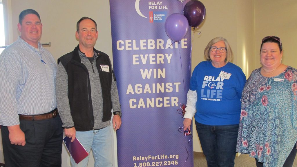 Kicking off the annual fundraiser are this year’s sponsors: Blythewood High School Principal Matt Sherman, left, and Westwood High School Principal Cheryl Guy, center right, standing with speaker Dennis Ballentine and Stephanie Reely, Southern Region Community Development Manager. The four met Sunday to organize and seek volunteers to help carry out the spring relay which honors survivors, remembers loved ones lost and raises money to further the American Cancer Society’s life-saving mission.