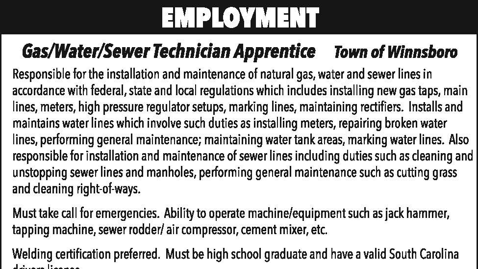 Employment: TOW Gas/Water/Sewer Technician Apprentice