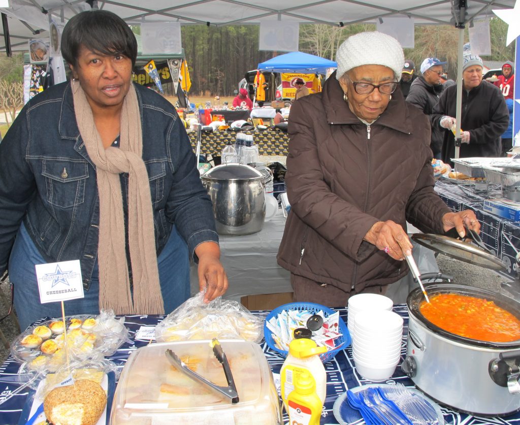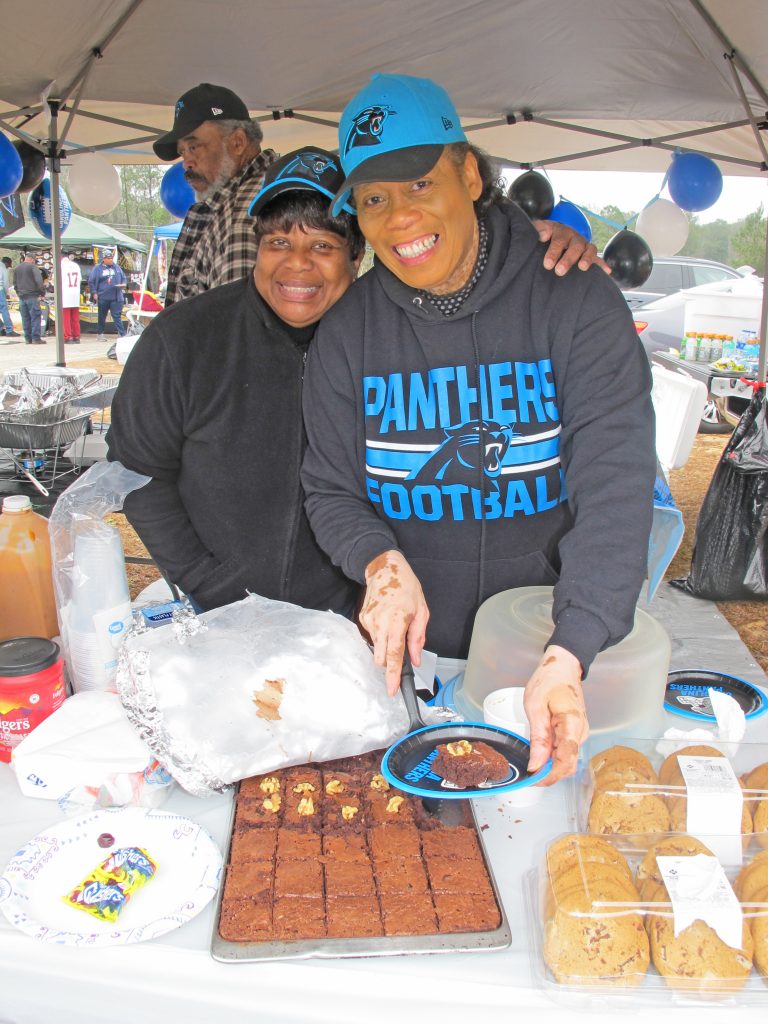 Pat Belton and Maggie Lawhorn dish up homemade brownies in the Panthers’ team tent.