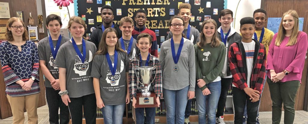 On Feb. 8, the Blythewood Middle School Quiz Bowl team, under the direction of Mrs. Janie Hamrick and Mrs. Stephanie Turiak won the Richland Two Quiz Whiz Bowl Championship. The Blythewood Middle team went undefeated throughout the two-day competition.