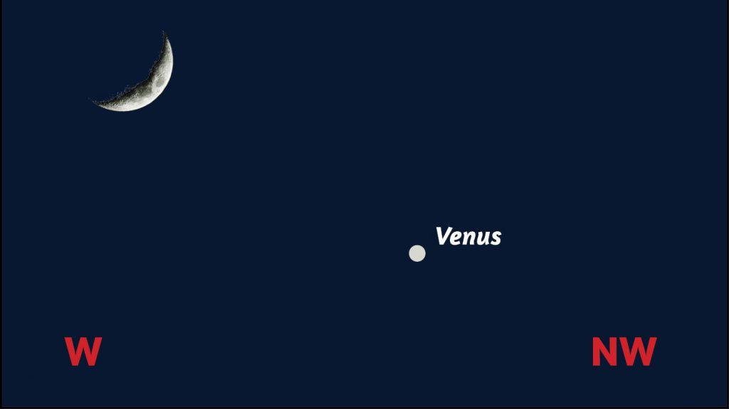 This graphic is a rendition of how the crescent moon and Venus appeared in the night sky over South Carolina Sunday night.