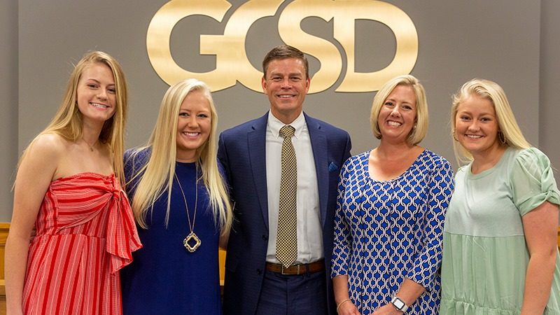 Shown with him are his wife Janet and three of their four daughters – Micah and Amanda on the left and Camryn on the right. Daughter Lauren was unable to attend due to a previously scheduled advanced placement test.