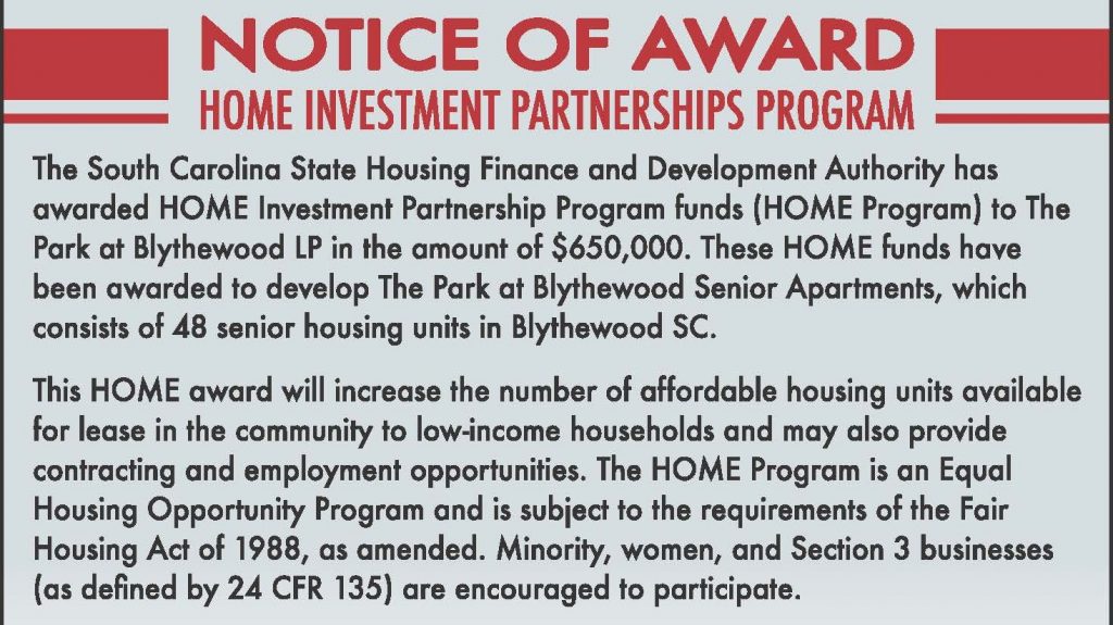 Notice of Award: Home Investment Partnerships Program
