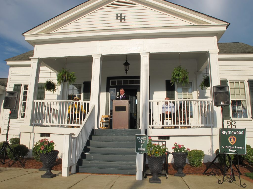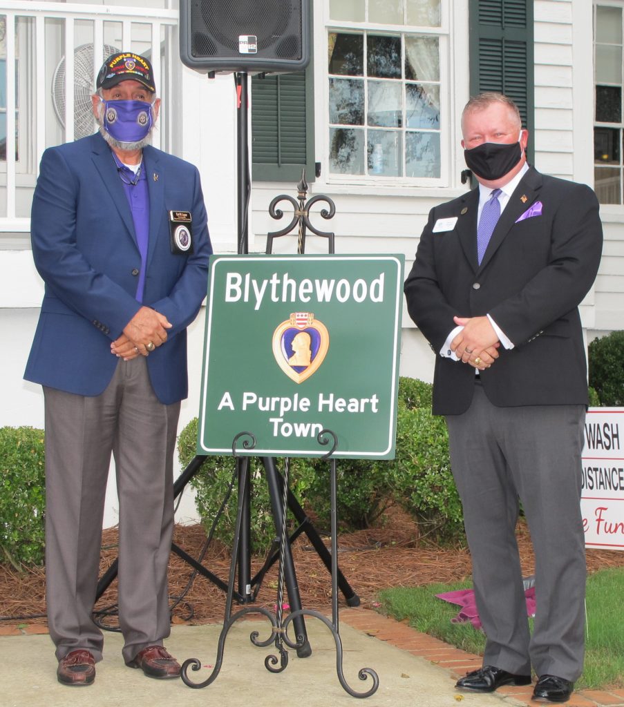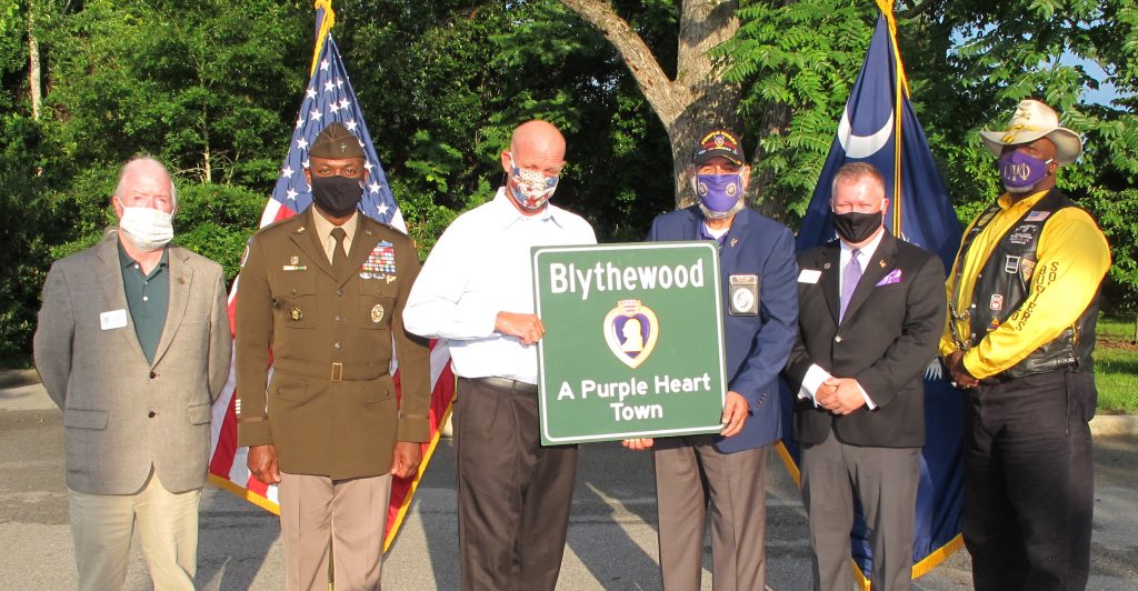 A sign proclaiming Blythewood as a Purple Heart Town was unveiled during the ceremony.