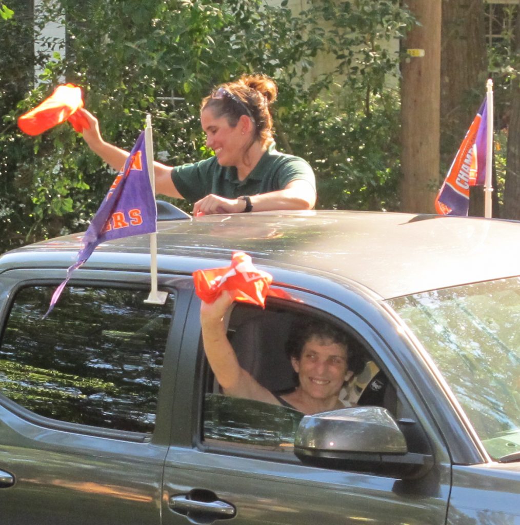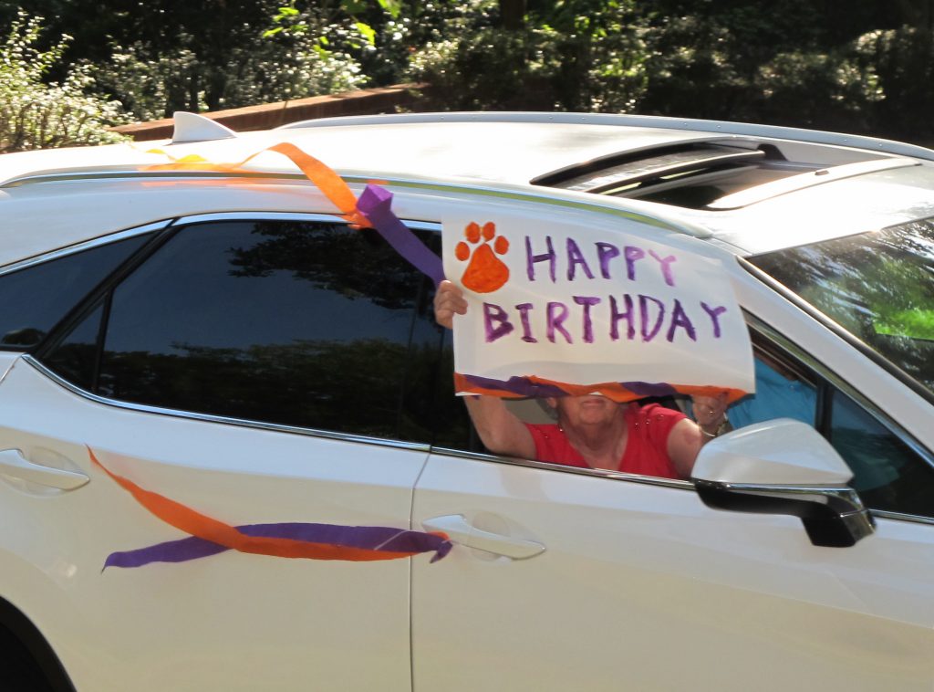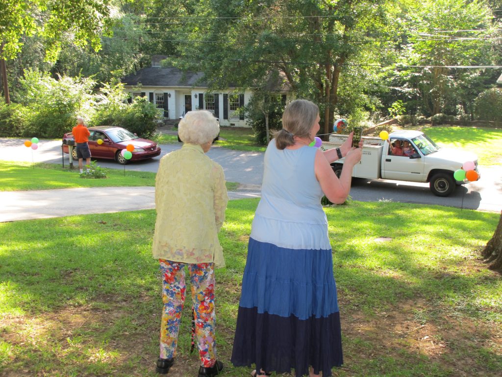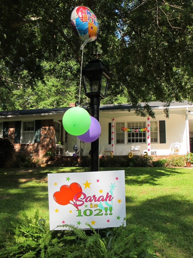 WINNSBORO – Sarah Boulware turned 102 last week with a drive-thru birthday party at her daughter Betsy Weatherby’s home in Winnsboro. Led by a Winnsboro Public Safety Department patrol car blaring the Happy Birthday song, a caravan of friends, family and members of her church, First United Methodist Church, drove past shouting and waving their best wishes, hoisting balloons and signs from their vehicles.