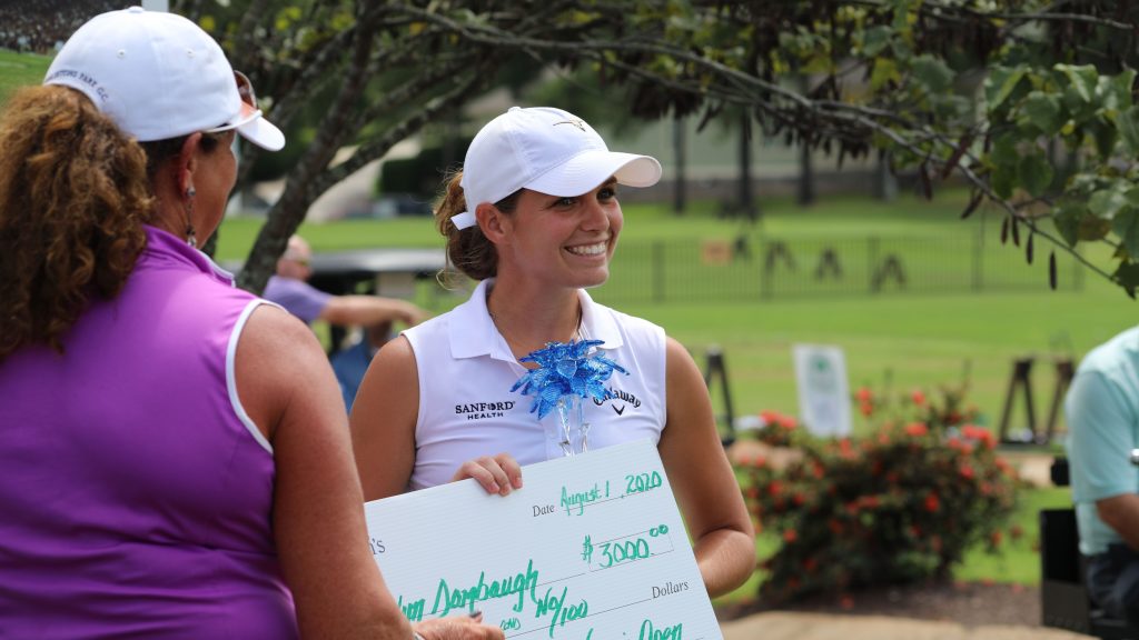 The Overall Champion and Professional Division Champion was Katelyn Dambaugh from Charleston, SC. Dambaugh, a University of South Carolina graduate, won her first professional golf tournament on her collegiate home course, Cobblestone Park Golf Club. Dambaugh put together 3 under par rounds of 65-66-69 for a 13 under par total of 200 to beat defending SC Women’s Open Champion Sydney Legacy by 5 shots; 6 shots better than amateur Gina Kim. Legacy finished strong posting another 67 for a three day total of 71-67-67.