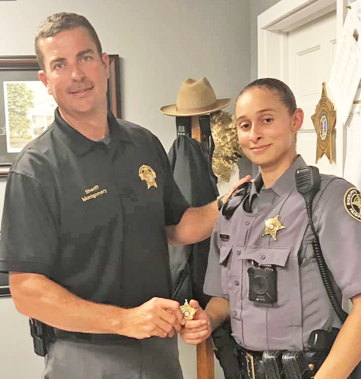 Fairfield County Sheriff Will Montgomery congratulates Deputy Amber Shults on her promotion to Lieutenant.
