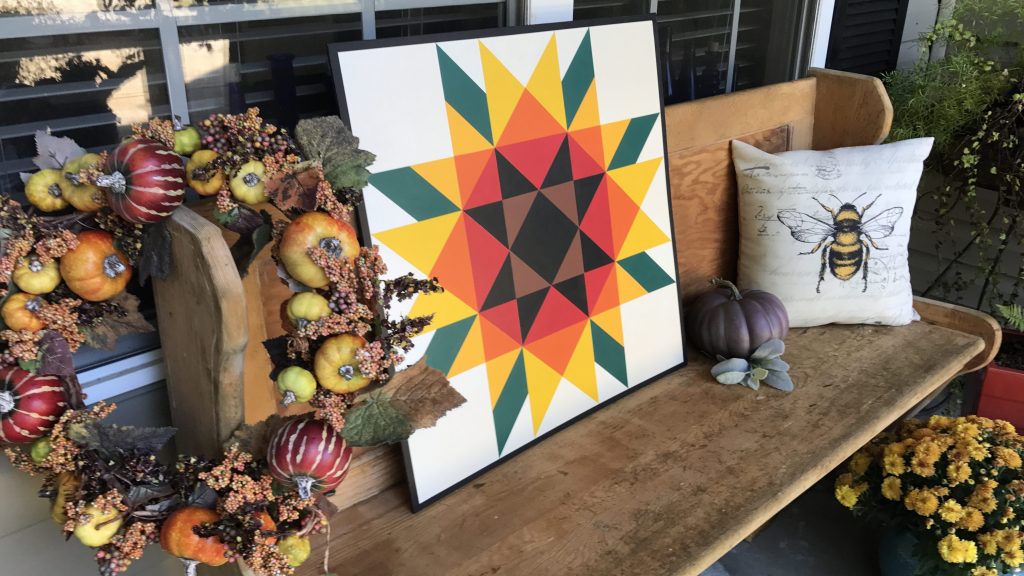 A new term to some, Snyder describes it as, “not a full quilt on a barn, just a piece of the quilt – a block normally in a perfect square shape, which she then paints on square pieces of wood. The blocks can be hung on outdoor porches, sheds or even on the interior.