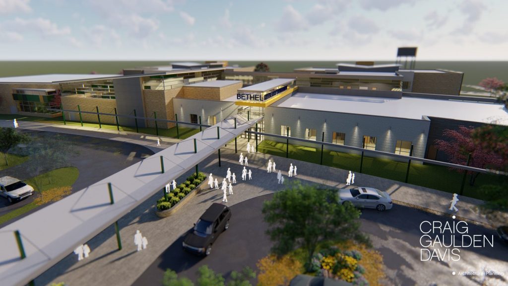The proposed project is located on approximately 19 acres along Boney Road behind where the current Bethel-Hanberry Elementary School now sits. The applicant proposes to build a new 137,000 square foot elementary school adjacent to where the current school sits, then demolish the existing school, except for the gymnasium which will be preserved.