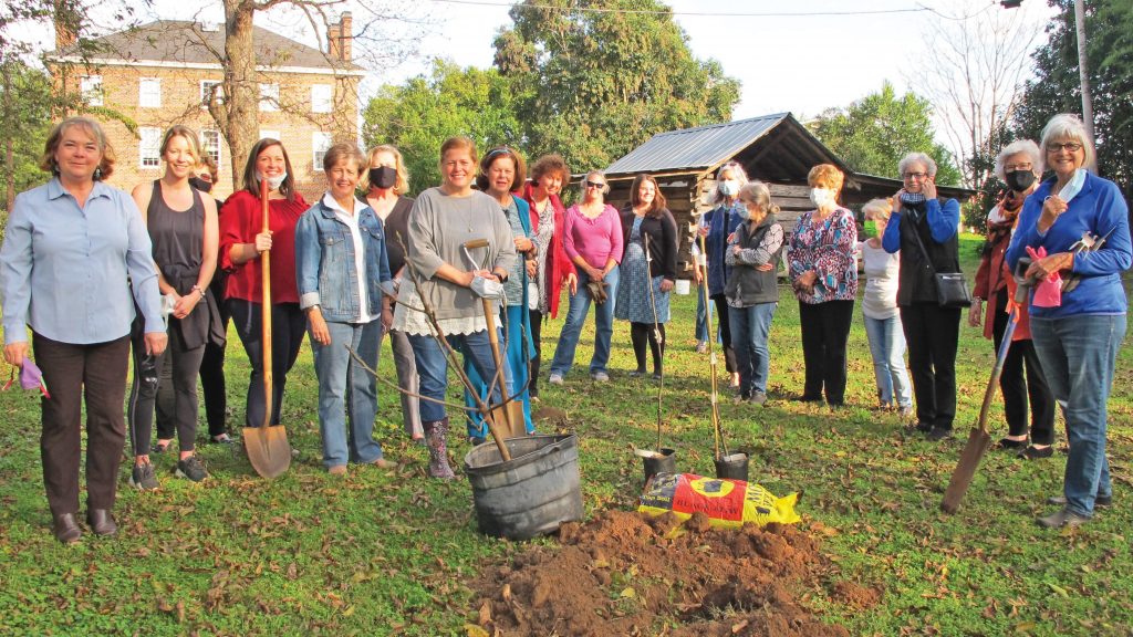 WINNSBORO – Approximately 20 members of two Winnsboro garden clubs – Anemone Garden Club and Town & County Garden Club – gathered Sunday, Nov. 15 to plant two apple trees and a fig tree in the lot behind the Fairfield County Museum.