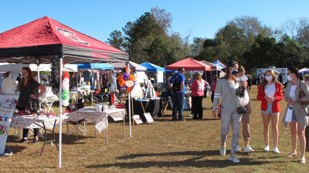 BLYTHEWOOD – Blythewood’s Farmers Market held a Holiday Market in Doko Park Saturday with colorful vendor tents dotting the park and a crowd of shoppers. The booths were stocked with vegetables, gifts, masks and more – much more.