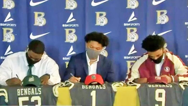 Burrell officially inked his collegiate plans to play for Florida State on Dec. 16, Timmons signed to play for Charlotte, and wide receiver Nobel Cooper signed to play for Brown University.