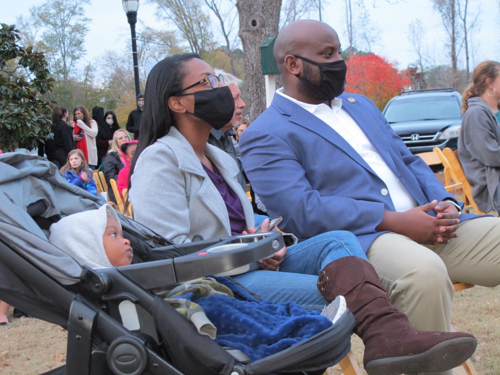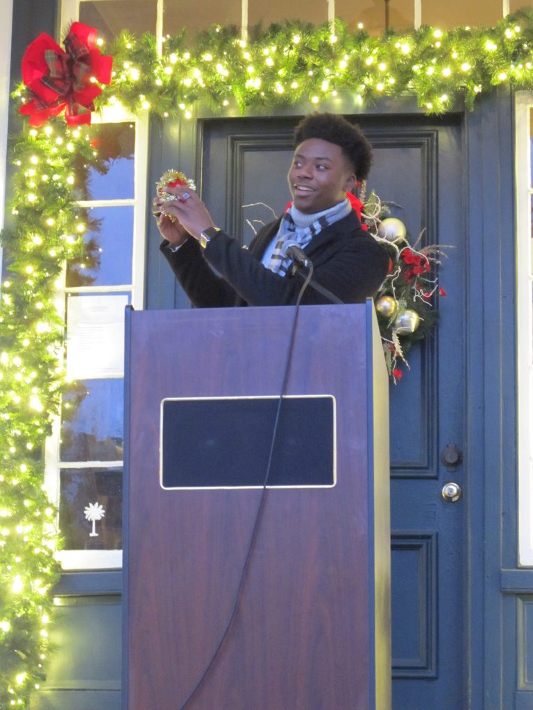 BLYTHEWOOD – As Freeway Music maker, Sophia Lynch, strummed her guitar to set the mood for the Town of Blythewood’s annual tree lighting, Town Councilman Donald Brock, Jr., welcomed a hundred or so guests socially distanced across the front lawn of the Town Hall.