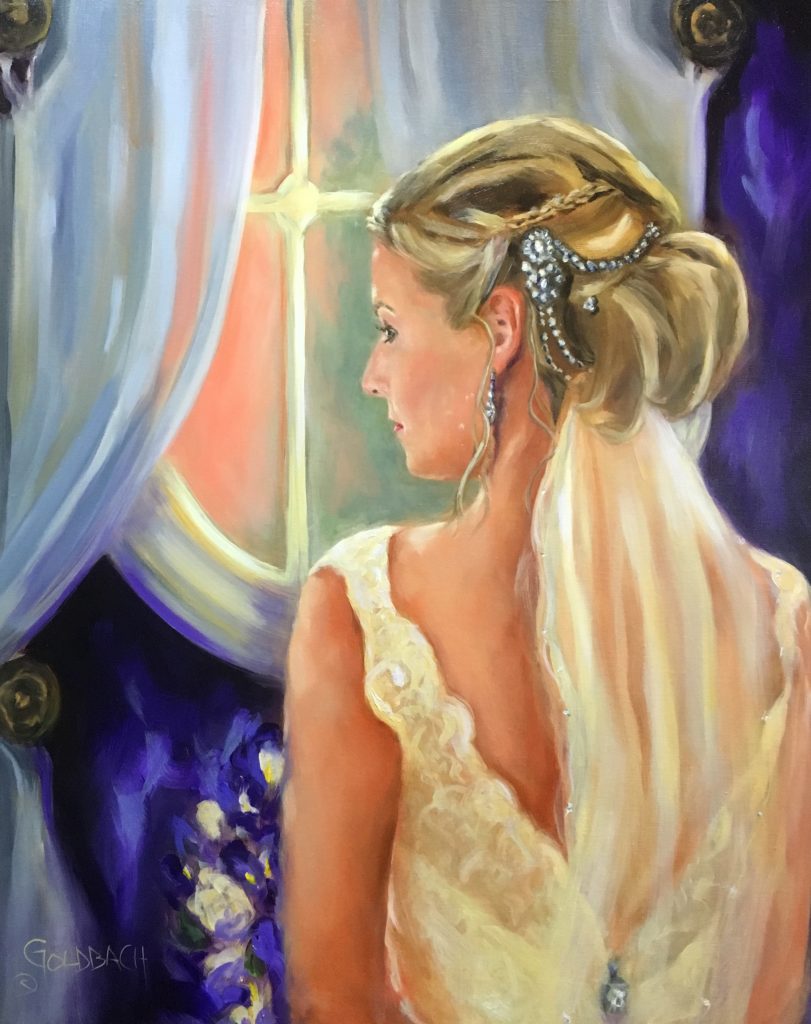 “In my bridal portraits, I look for a candid moment where an expression tells a story. This allows me to create a painting that will capture a moment and an emotion to be remembered forever.”