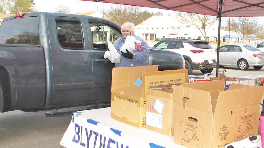 BLYTHEWOOD – The Blythewood Lions Club braved a cold Saturday morning breeze to accept food donations from drive-by donors. The food items were donated to Christian Assistance Bridge.
