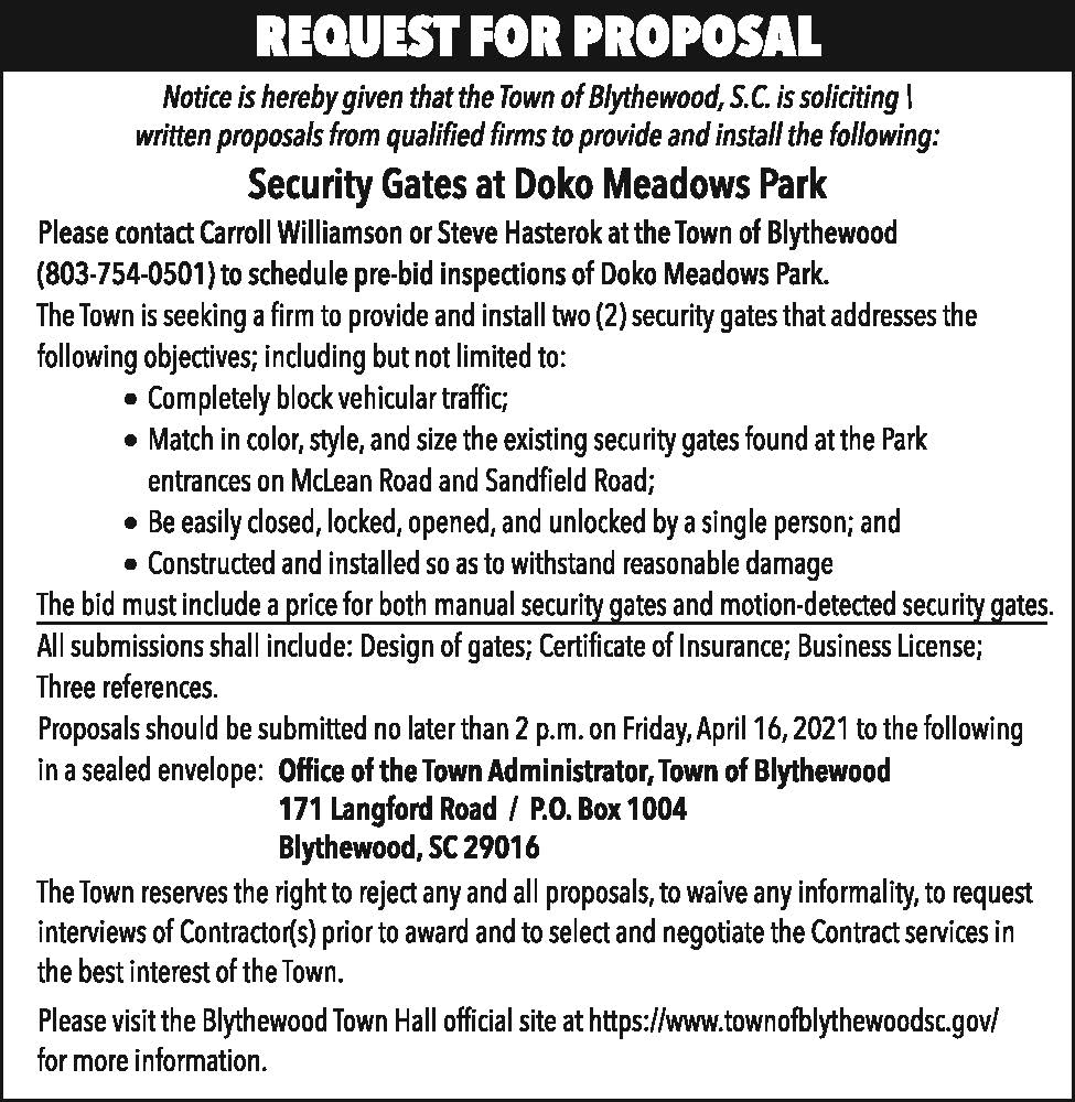 Request for Proposal: Security Gates at Doko Meadows Park