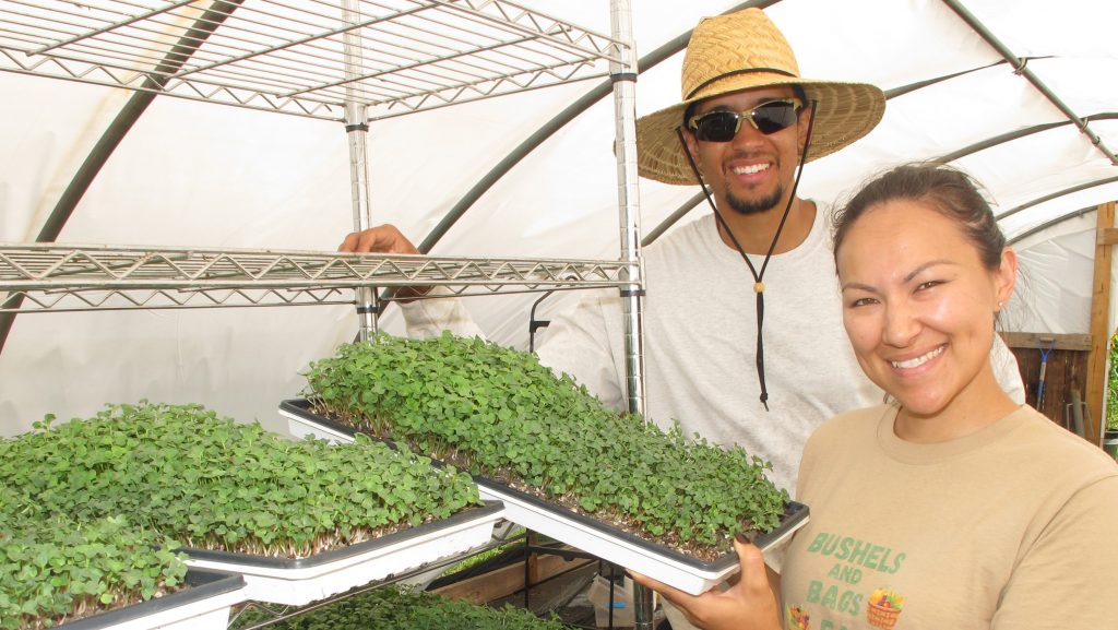 “At the beginning… that’s how we introduced ourselves as Bushels and Bags Farm: with the microgreens,” Kim says.