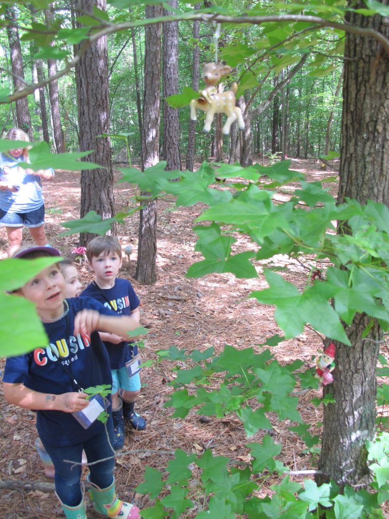 Last month, the cousins campers spent one morning of their weekend camp visiting Wisemans’ farm off Blythewood Road where they visited with a squirrel that Wiseman is raising, fed treats to horses and took a stroll down Fairytale Lane – a trip through the woods on Wiseman’s property where the cousins found hidden treasures on tree limbs, at the base of trees, in leaf piles and on bushes.