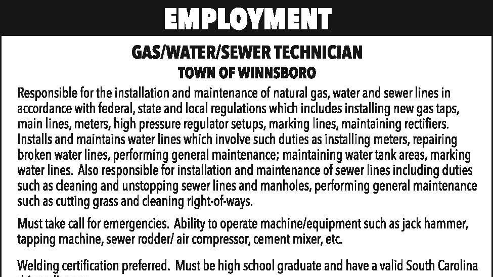 Employment: Gas/Water/Sewer Tech