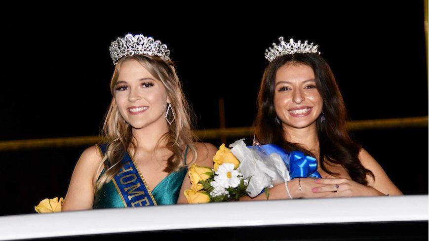 Seventeen young ladies were introduced to the crowd and made their way onto the field prior to the announcement of the Homecoming Queen Mikaela Miller, left, and Football Sweetheart Juliet Pineda, both seniors. Former 2020 Queen Emma Castles was escorted by kindergarten crown bearers Eliza Coleman and Hampton Hazen to crown the winners. During Friday’s Homecoming pep rally and parade, senior B Baker was named as Homecoming King.