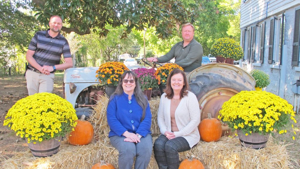 WINNSBORO – The staff of the Winnsboro Town Hall has created a setting for families to have Halloween or Fall Harvest photos made. The antique tractor setting features pumpkins and colorful fall mums.