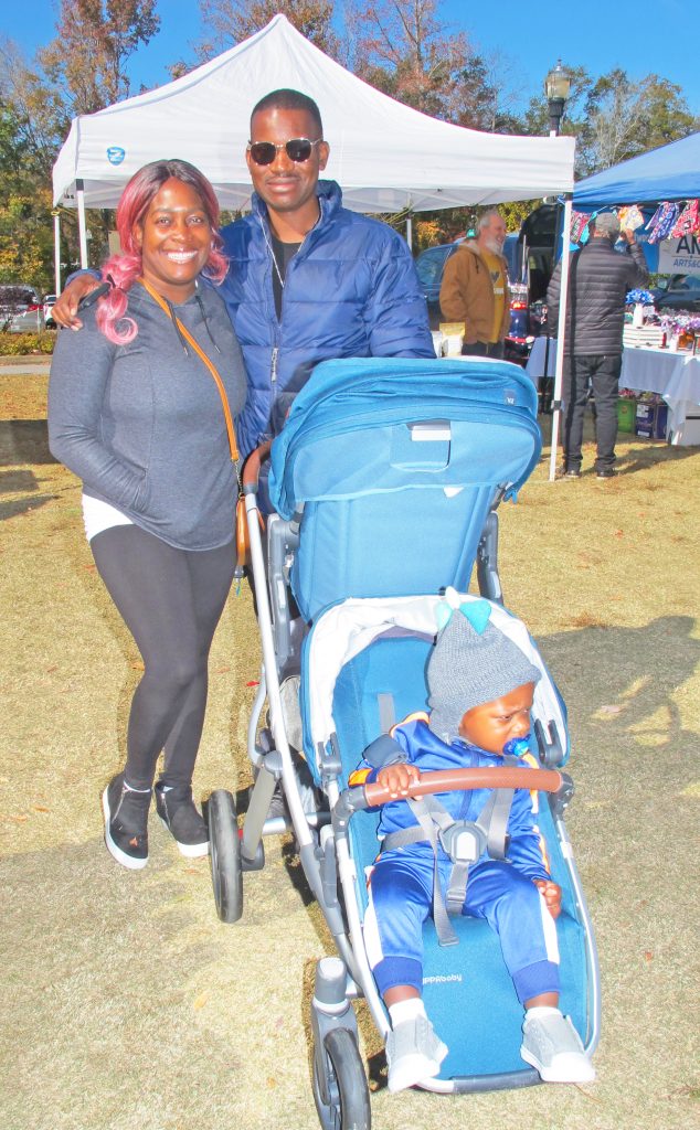 Vickie and Renee Woodard brought their Dazzling Sweets booth. Kevin and Connie Benson stroll with their toddler Captain.