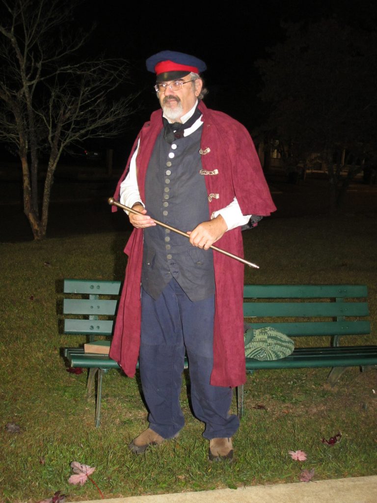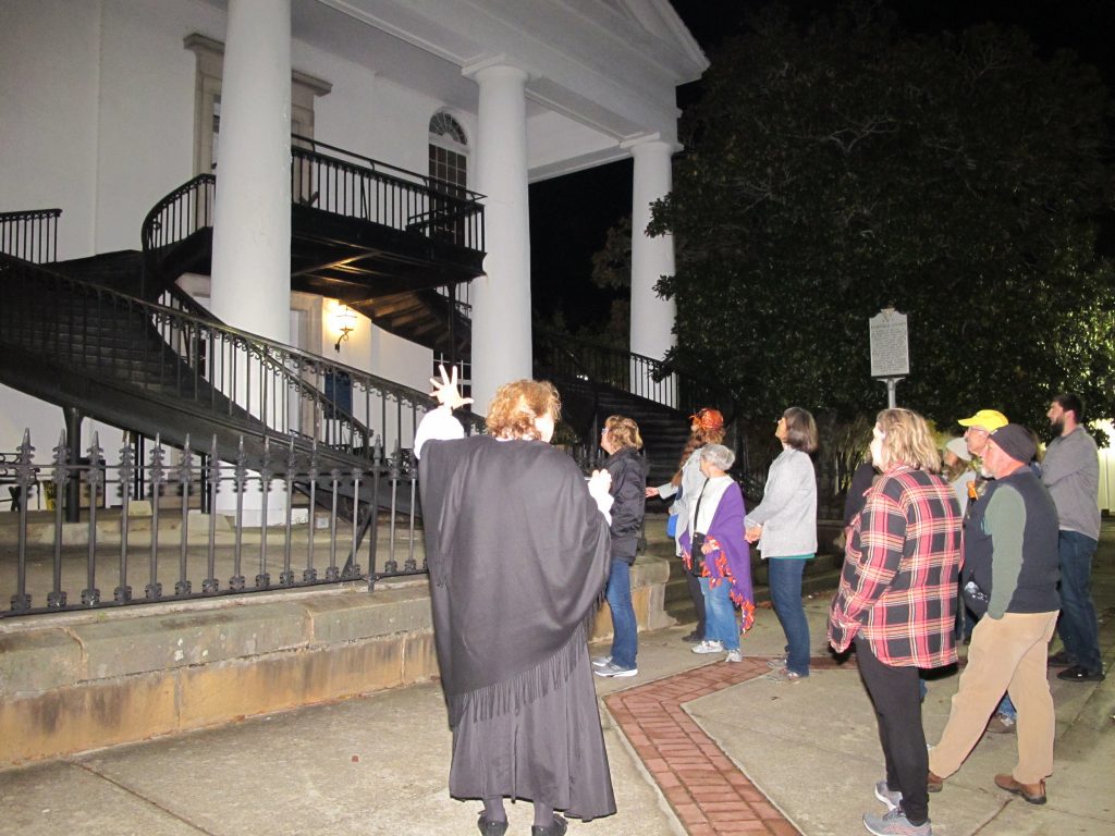 WINNSBORO – The annual Woman’s Club ghost walk through downtown Winnsboro the day before Halloween offered everything a ghost enthusiastic could hope for. Members of the Pine Tree Players portrayed prominent figures from Winnsboro’s past and took part as guides, taking almost 40 guests in four separate groups through the dark to haunted gardens and creepy cemeteries on a night just chilly enough to make ‘scary’ be fun.
