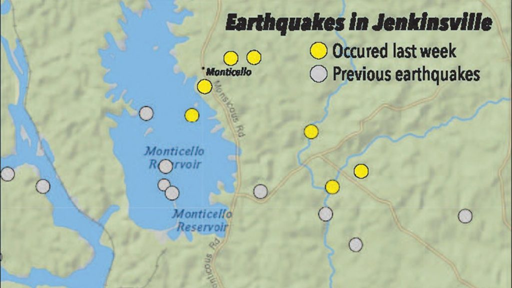 JENKIINSVILLE – Seven earthquakes have stuck in and around the Jenkinsville area over a seven day period with the first on Monday, Oct. 25 and the last on Monday, Nov. 1