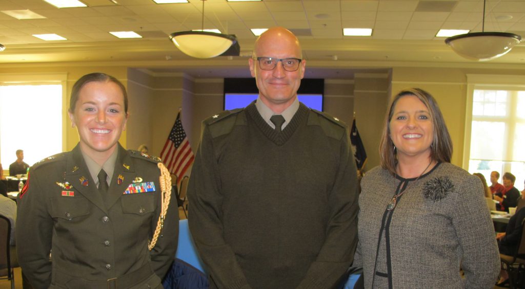 BLYTHEWOOD – Fort Jackson’s new commander, Brig. Gen. Patrick R. Michaelis was in town Tuesday morning to speak to members of the Blythewood Chamber of Commerce. Accompanying him were his wife, Bonnie, right, and his aide, Capt. Meredith Piro.