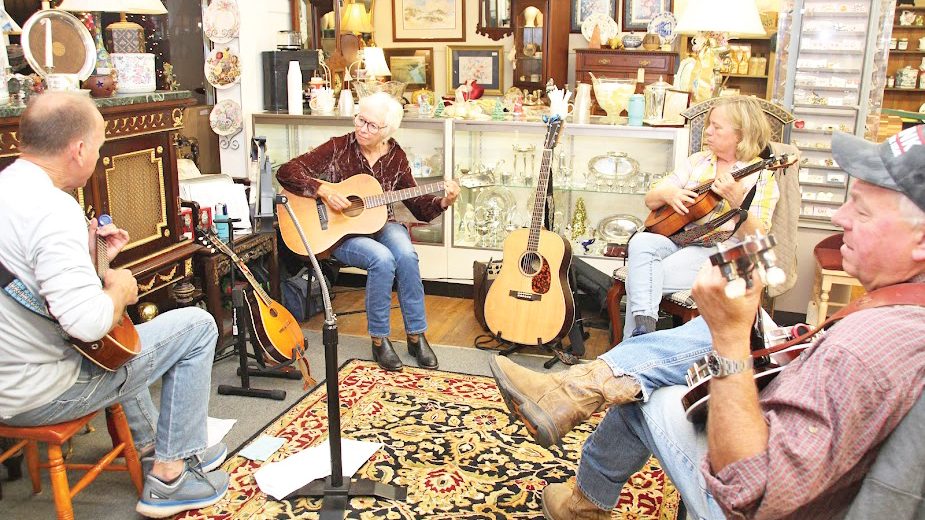 WINNSBORO – The Fresh Picked band entertained at Oldies and Goodies in Winnsboro during First Friday, Dec. 3. Strumming are: Jeff Mattox, Lynn Douglas, Natalie Pope and Heyward Mattox.