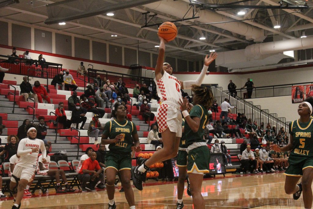 Westwood girls opened their 2021 season at home against Spring Valley on Tuesday. Up 19-8 in the first, Spring Valley came back to lead 32-29 at half. The Redhawks rallied to conquer the Vikings by a 58-54 margin.  Junior Jessica Woods, pictured above left, led Redhawk scorers with 24. Korletta Daniels added 13. The Redhawk girls defeated River Bluff (51-30) and Eau Claire (59-36) in preseason play.